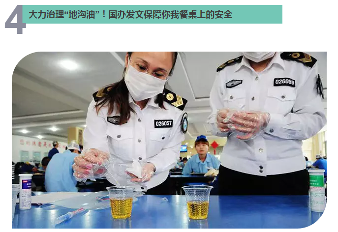 近日,国务院办公厅印发《关于进一步加强“地沟油”治理工作的意见》,就构建“地沟油”综合治理长效机制作出安排部署。《意见》聚焦“地沟油”综合治理,提出了五个方面的政策措施:一是强化企业主体责任。二是培育无害化处理和资源化利用企业。三是完善配套措施和技术手段。四是落实监督管理责任。五是严厉打击“地沟油”违法犯罪。