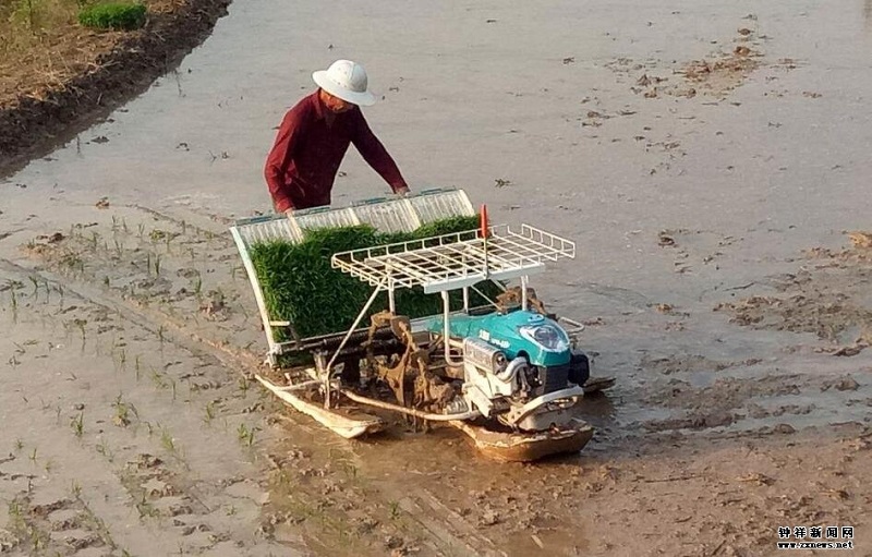 5月7日,张集镇杨畈村三组村民秦成宝正在机械插秧。该村属于高山区,富晒土壤,全部订单种植富晒水稻品种,目前全村已插秧200多亩。